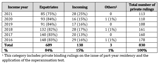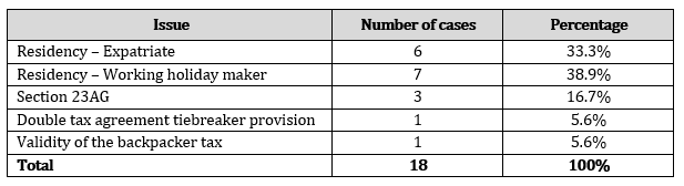 From 2016 to 2021, there have been 18 cases and 830 private binding rulings dealing with the issue of individual tax residency. This is in stark contrast with the 25 cases litigated in the 79 years between 1930 and 2009, when the individual residency rules were first enacted.