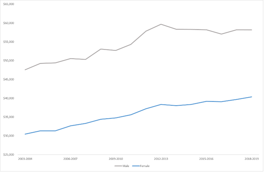 The second finding is that men earn more than women. In 2018-19, the average wages for men were $58,134, compared to $40,387 for women.