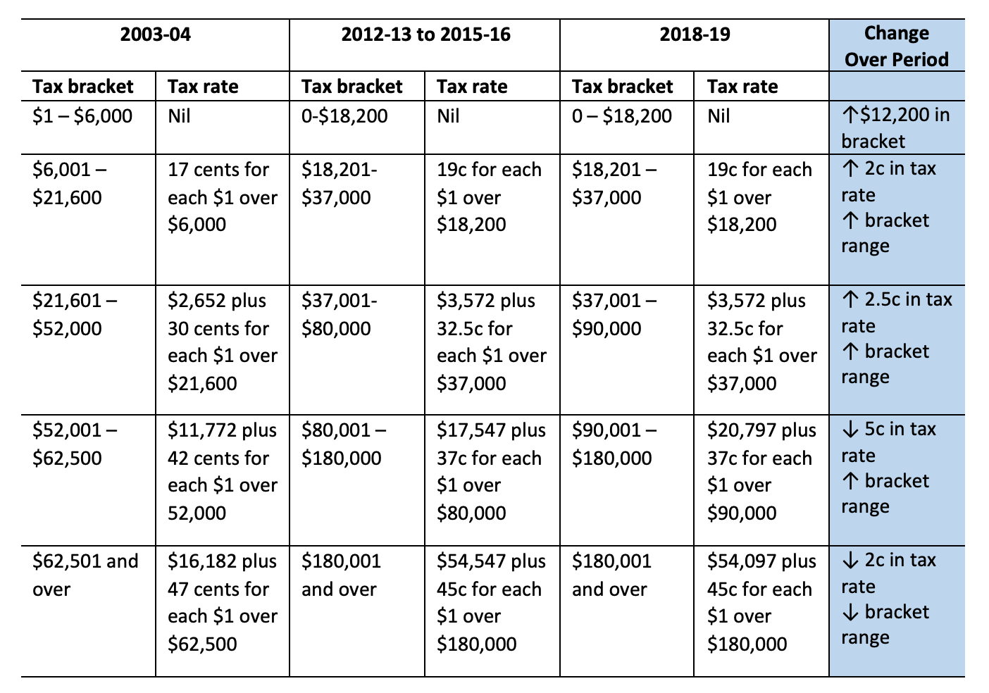 As reflected in Table 1, whilst the tax-free threshold has increased by $12,200, the progressiveness of tax rates flatten. This is further accentuated with subsequent stages of tax cuts.