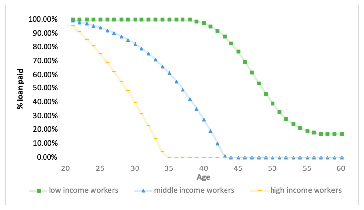 Figure 1: Share of loan repaid during working age by income group