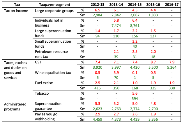 Source: ATO Annual Report, 2017-18, Canberra and ATO website (accessed 19 December 2018).