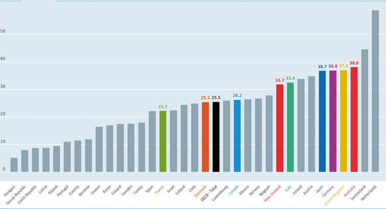 Source: OECD data (2017 or latest data, selected countries highlighted).