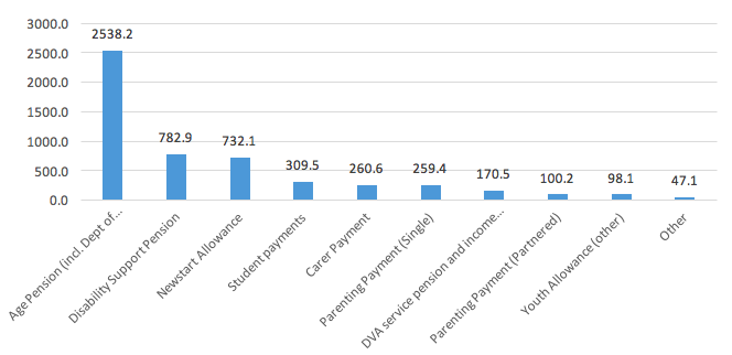 Figure 1: Recipients (000s) of main income support payments, June 2016