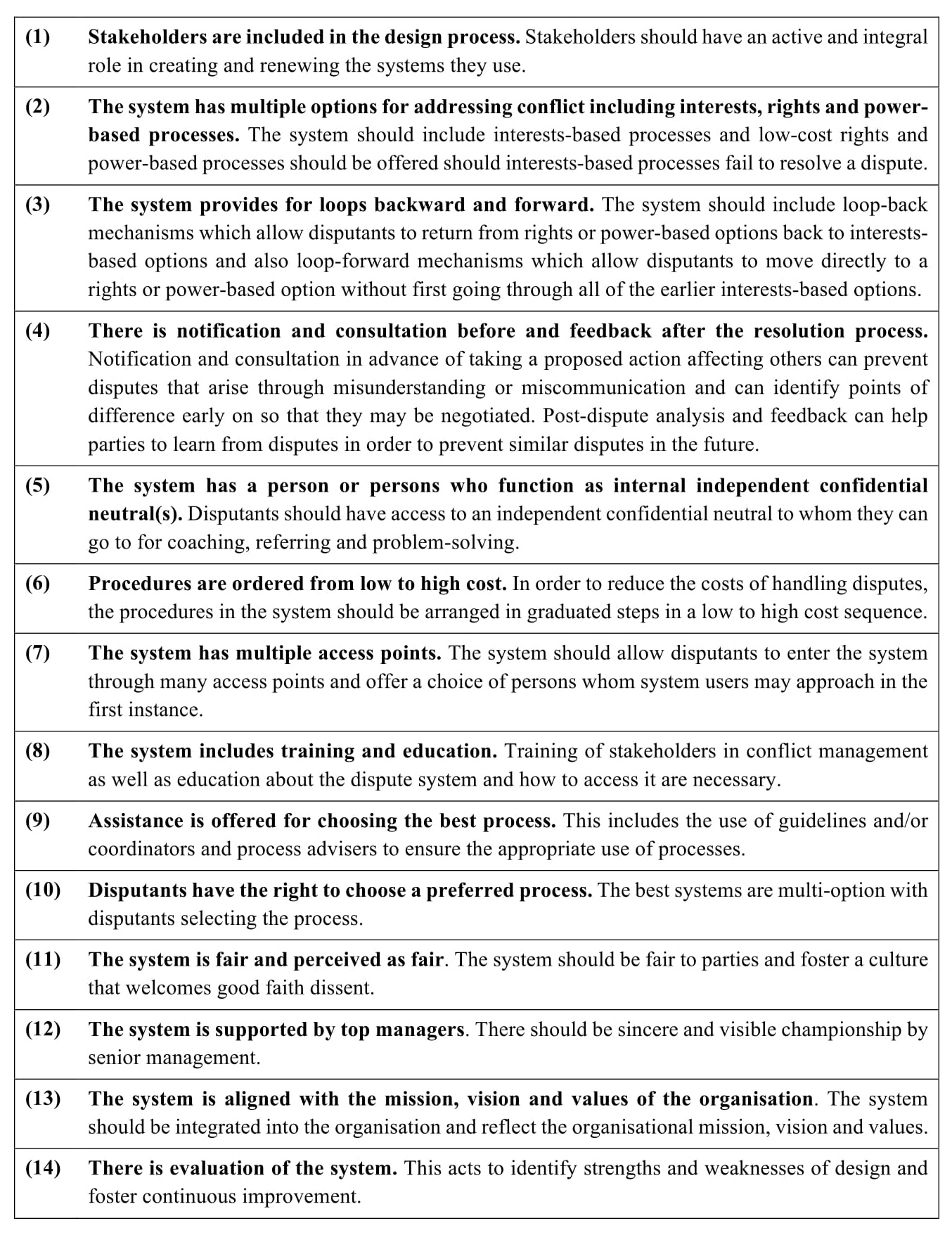 Other countries could draw from certain design strengths of the Australian system, set in the context of the ATO’s reinvention project, with respect to: stakeholder involvement in the design process (DSD Principle 1); the provision of feedback on disputes (DSD Principle 4); inclusion of education and training (DSD Principle 8); support and championship of the system by senior revenue authority members (DSD Principle 12), alignment of the dispute resolution system (and ADR) with the wider tax administration system (DSD Principle 13); and evaluation of the system (DSD Principle 14).