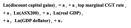 To test the hypotheses, we use the following regression model to estimate the capital gains realisations response for Australian personal taxpayers: