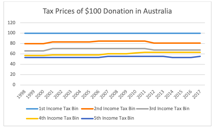 Figure 1: Tax Prices of a $100 Donation in Australia