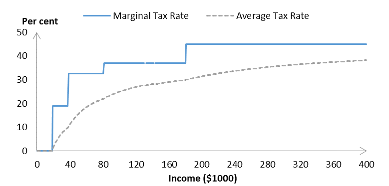 Figure 2: Marginal Versus Average Tax Rates in the Australian Income Tax System